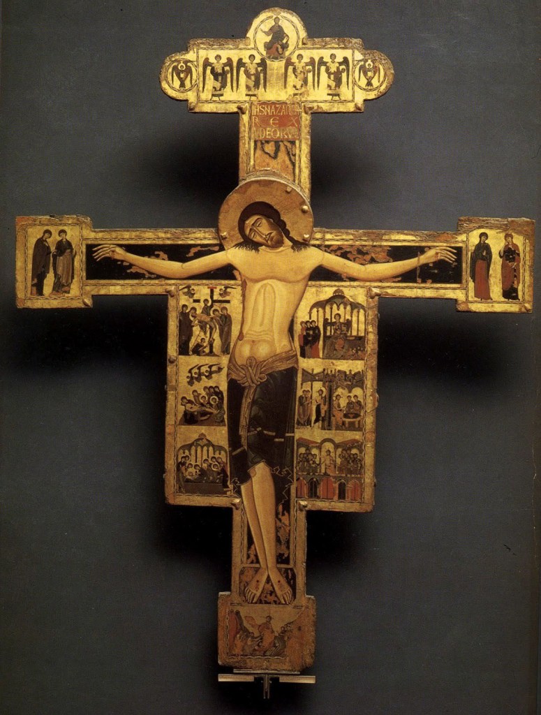 San Damianon krusifiksin Jeesus ei edes näytä riippuvan ristillä, vaan pikemminkin seisovan sitä vasten.