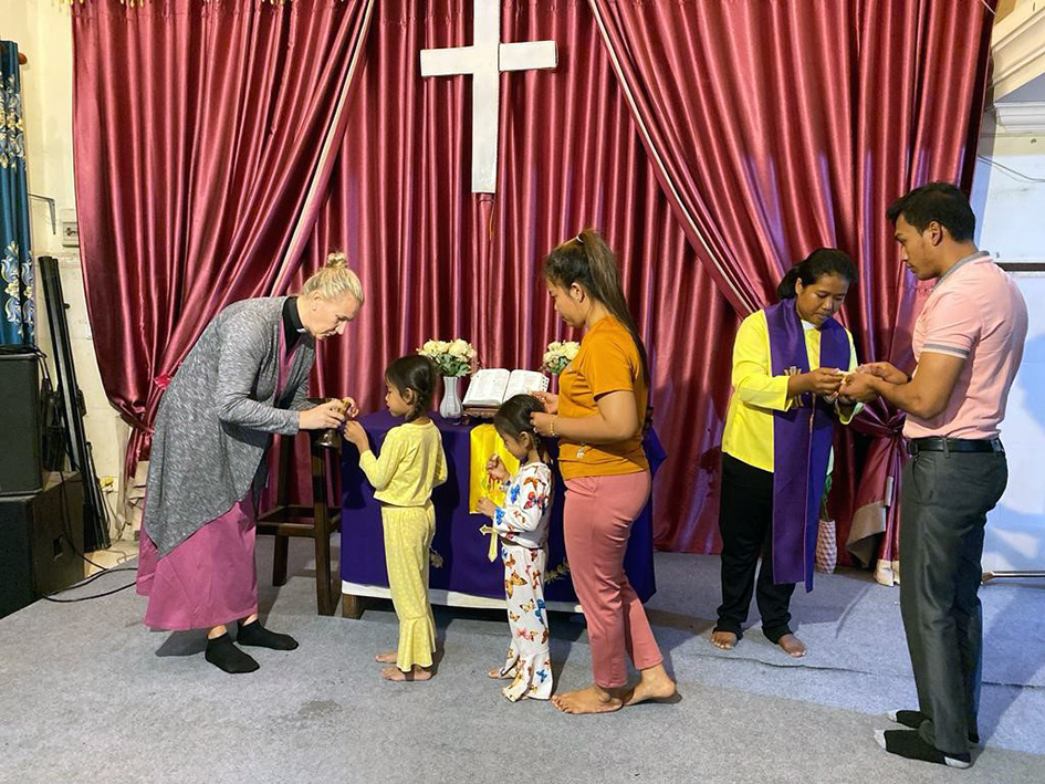 – Luterilainen ihmiskuva on realistinen. Siihen ei kuulu menneiden sukupolvien paino, vaan vapauden ajatus. Jokainen voi vapautua täyteen toimijuuteen omassa perheessään, mutta se vaatii turvallisuutta. Oman työni ydintä oli edustaa luterilaisuutta paikallisen kirkon työntekijöille ja johtajille, jotka etsivät luterilaista identiteettiä. Tärkeintä oli, että tein rinta rinnan heidän kanssaan töitä ja he alkoivat luottaa itseensä kambodžalaisina kristittyinä.