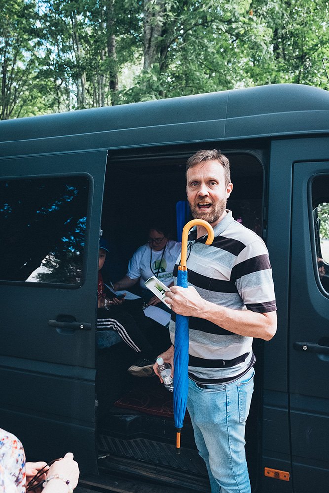 Jalasjärveläinen Sami Hakkola löytyy eräänä heinäkuisena viikonloppuna herättäjäjuhlien kuuluttamosta. Hakkola ujuttaa kuulutuksien väliin myös vähän omiaan, sekä huumoria että hengellistä sisältöä.