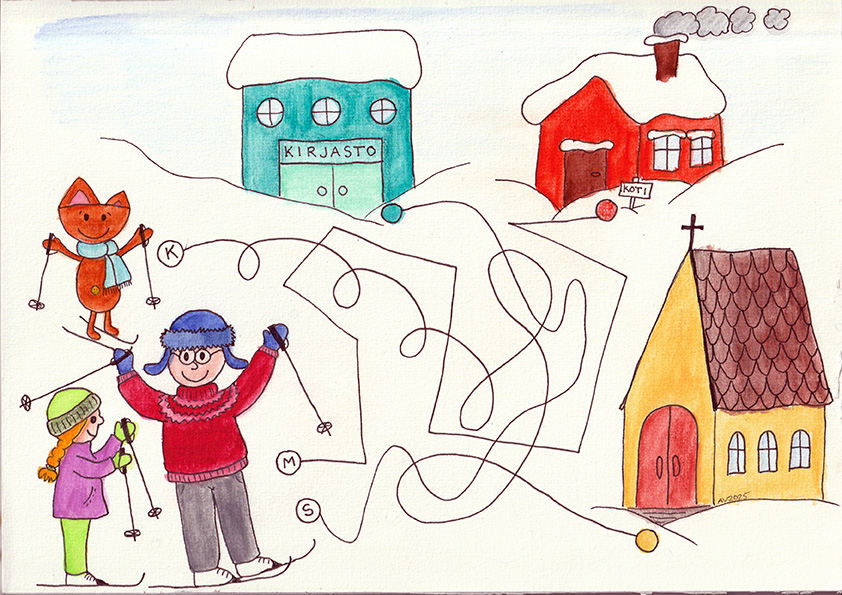 Sannin otsalla kiilteli hikipisaroita ja hiukset liimautuivat ohimoille. Köppänen tuntui painavalta selkärepussa. Mumma hiihti edellä.