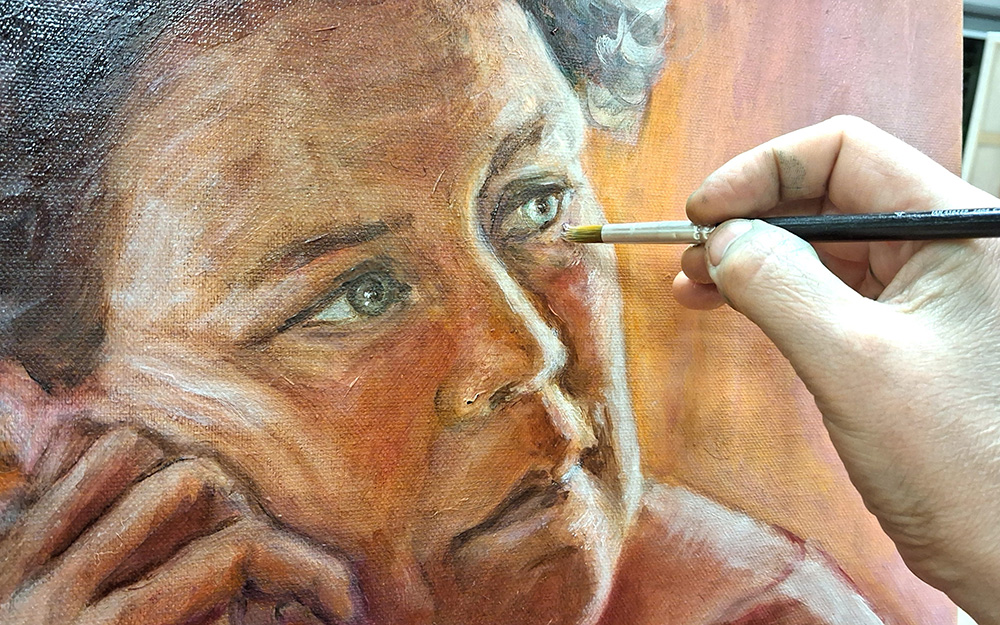 Tehdessäni muotokuvia seurustelen kuvan kohteena olevan kanssa. Hän on voimakkaasti läsnä minulle koko prosessin ajan, vaikka maalaan valokuvasta. Kaukana oleva ystävä onkin äkkiä aivan siinä, hiusten pehmeys, nenän kaari, silmien valo. Olen päässyt näin viettämään aikaa niin omien isovanhempieni kuin appenikin kanssa, jotka kaikki ovat kuolleet, ennen kuin ehdin heitä tavata. Tämä yhteys tuntuu niin aidolta, että se on todellinen osa elämänkokemustani. Kerron erään esimerkin, joka kuulostaa ehkä huuhaalta, mutta menköön, onhan tämä hengellinen lehti.